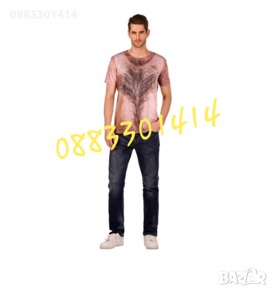 Карнавална мъжка блуза космато тяло с къс ръкав.