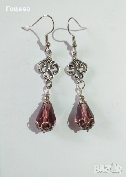 Прелестен комплект бижута във Викториански стил с кристали капка цвят Бургунди и изящна орнаментирана основа в цвят Сребро . Модела може да се направи с кристали в кафяв цвят. Авторски дизайн. Ръчна изработка. Стилни и елегантни бижута ! Цена на комплекта- 35 лв. Доставка с Еконт и Спиди до всяка точка на България . За поръчка на лично съобщение .