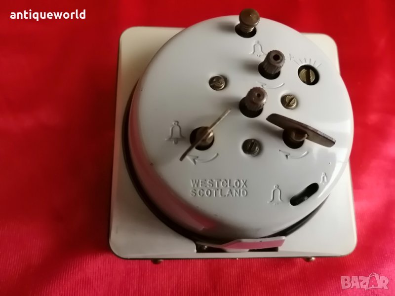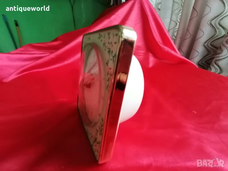 Уникален Много Красив Стар Рядък Настолен Часовник Westclox от 1950 -те Зелено и розово на цветя и месинг, механично навиване, произведено в Шотландия.Работи отлично и точно!Алармата не навива.Нераличим от нов!.Още :