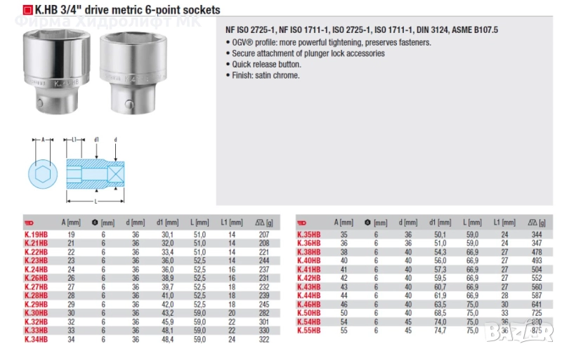 FACOM K.HB Вложка 3/4'' шестостенна - различни размери и цени