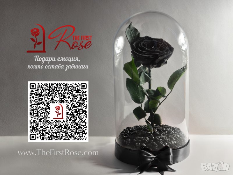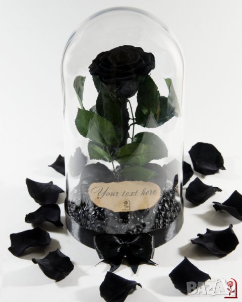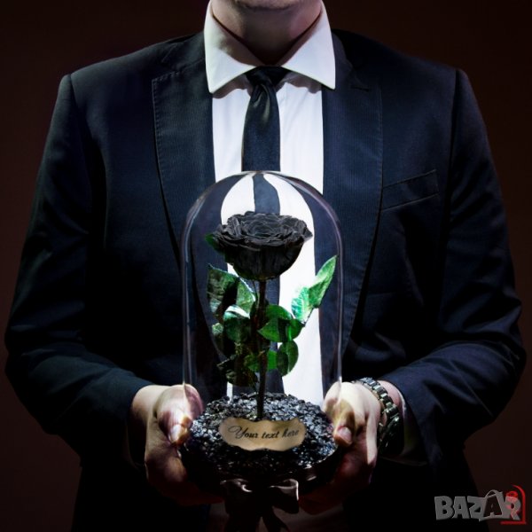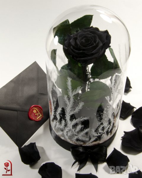 Представяме на вашето внимание уникална, ръчно изработена истинска вечна черна роза в стъкленица. Подарък за любов като никоя друга!