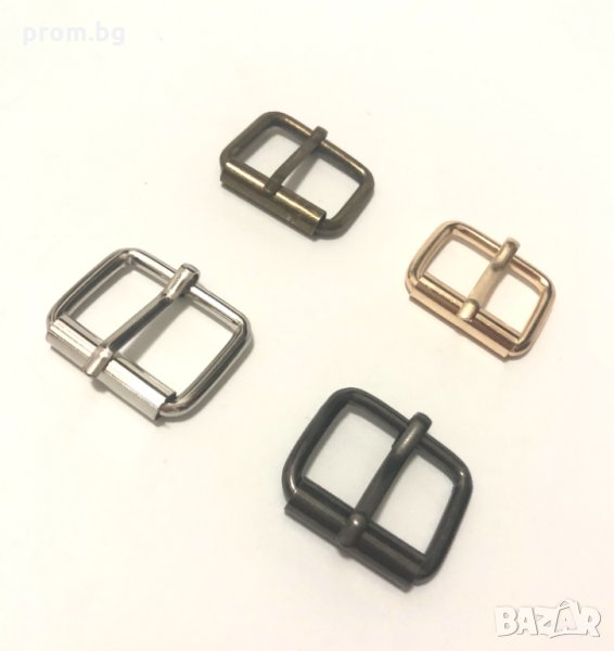 - метална катарама - 2 лв./бр. - Цвят сребристо, златисто, бронз, графит. Размери /прибл./: дължина - 2,7 см, височина - 3,2 см. Вътрешен диаметър 2 см х 2,5 см. Подходяща за колан с ширина до 2,5 см.