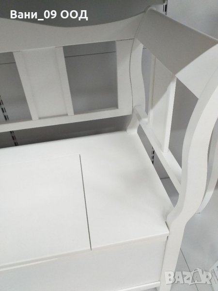 Красива интериорна пейка с място за съхранение в бял цвят.