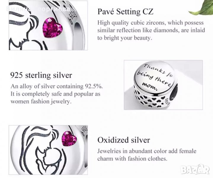 Талисман за гривна Пандора Maternal love сребро s924 модел 009 → Обява 34479257