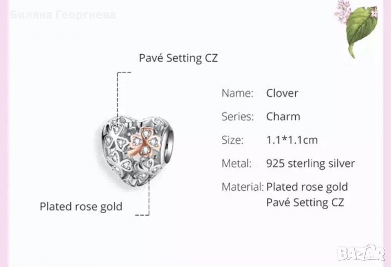 Талисман за гривна Пандора Clover сребро s925 модел 013 → Обява 34479312
