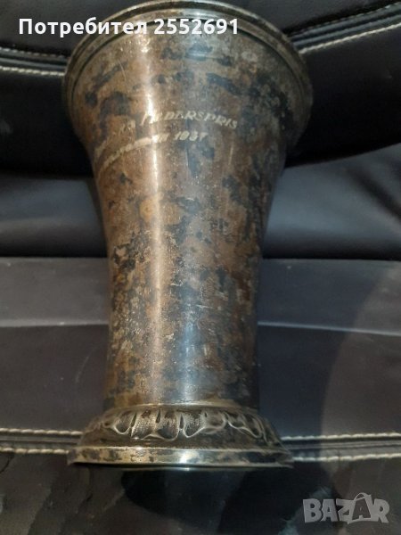 Винтидж посребрен съд с надписи "Gosta Orreniys Hederspris Travtavlingarna 1937 " C.A.B NS ALP. Височина- 19см. Диаметър в горната част-14,5см.