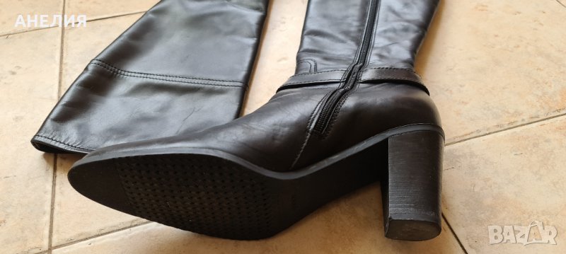 Качествени, елегантни, удобни, италиански, с финна топла подплата мерино, естествена кожа, високи до коляното, с цип, ластично клинче, висок стабилен ток, с дишащо противоплъзгащо ходило Respira, N 41- 42.