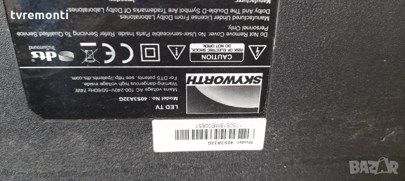 MAIN BOARD ,5844-A7N02G-0P00, for SKYWORTH 40S3A32G борда е гарантирано работещ Демонтиран от телевизор SKYWORTH модел 40S3A32G със счупен дисплей V400HJ6-PE1 Rev C3 тествана от нашия техник