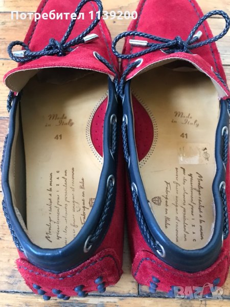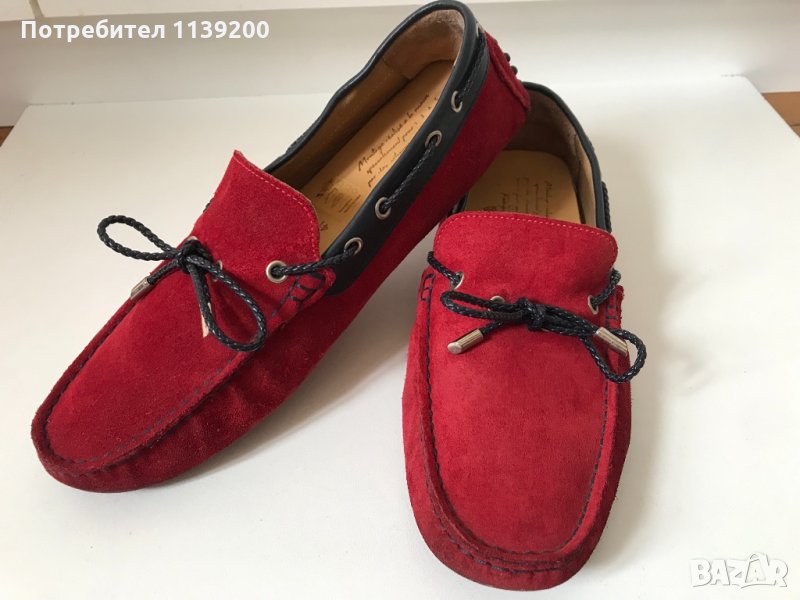 IZAC 41 червени мокасини естествена кожа ръчна изработка → Обява 34485601