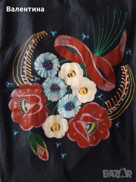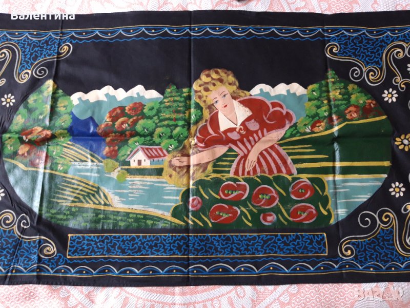 Комплект състоящ се от 2 бр. калъфки за възглавници и 2 бр. ковьор. Първите две снимки са на ковьора с р-ри 135/67 см., следва ковьор с р-ри 75/67 см. и калъфките за възглавници с р-ри 66/45 см. Изработени са върху черен памучен плат.