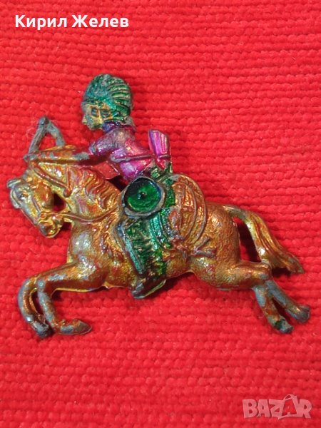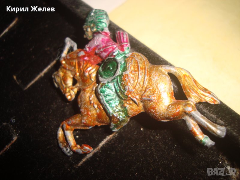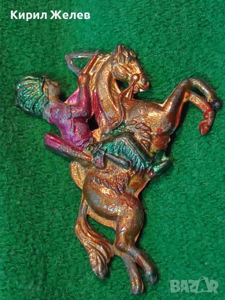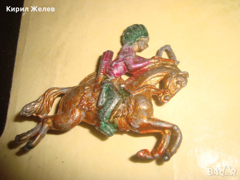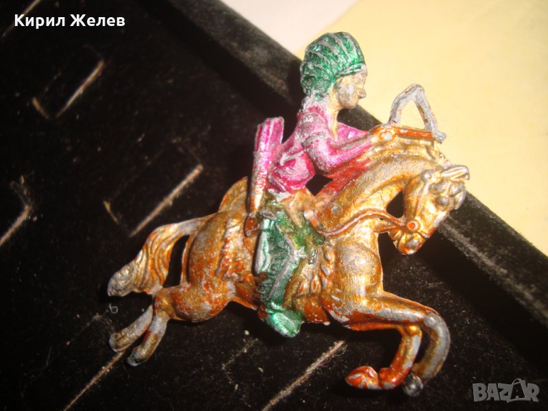 ИНДИАНЕЦ с ЛЪК на КОН СТАРА ОЛОВНА ФИГУРКА РЪЧНО ОЦВЕТЕНА ВОЙНИЧЕ РЯДКА СТАТУЕТКА 9011