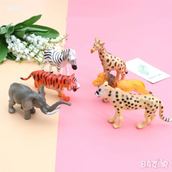 6 бр Диви Зоо Джунгла Животни слон лъв зебра жираф пластмасови фигурки за игра и украса торта → Обява 34486336