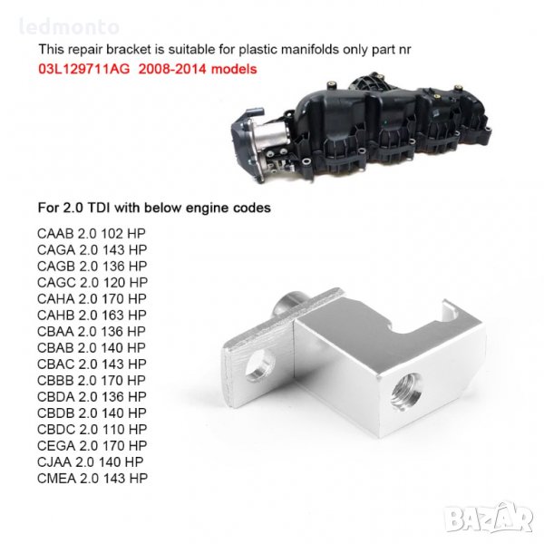 За всички двигатели VAG 2.0 TDI CR от 2008 - 2014 г. с пластмасови колектори OEM № 03L129711AG: