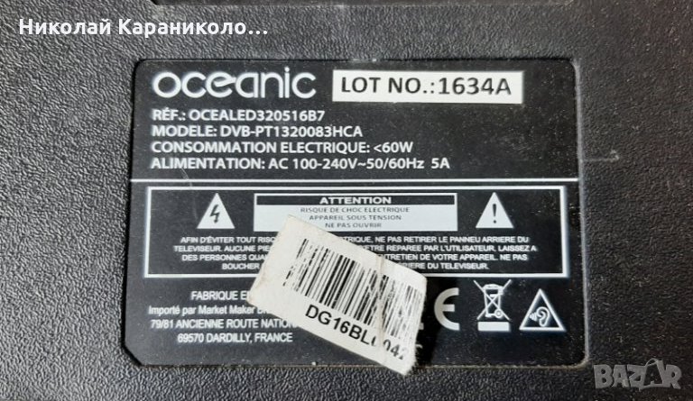 Продавам тв OKEANIC DVB-PT1320083HCA за части по причина-счупена матрица/А320 SD 5G22/.Редовни съответно: