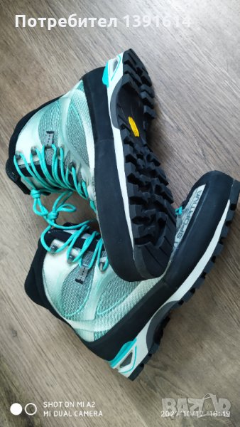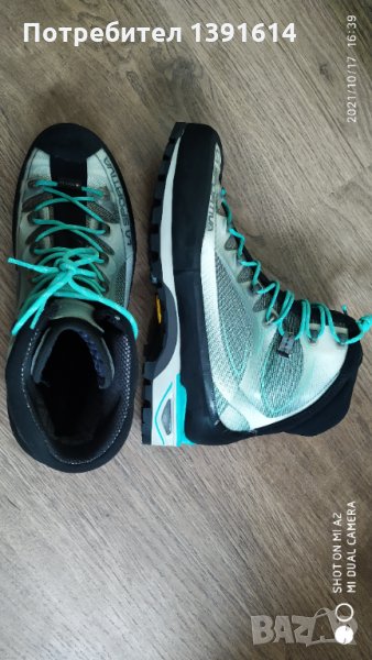 LA Sportiva Trango Cube, дамски туристически обувки размер 42.5. На практика нови, без почти никакви следи от употреба, вижте снимките. Пращам по куриер с опция преглед и тест.Дамската туристическа обувка La Sportiva Trango Cube GoreTex е свръхлека туристическа обувка за технически алпинизъм и екскурзии по ферата. Той предлага нов стандарт по отношение на тегло и прилягане. Ексклузивната, разработена в сътрудничество с подметката на Vibram La Sportiva "Cube", убеждава със зона за катерене на пръста и доказаната спирачна система за удар, това омекотява въздействието на събитието, поддържано по време на сцепление и подобрена спирачна ефективност при спускане. Системата 3D Flex на вала поддържа движението на глезена и осигурява стабилност на неравна повърхност. Цветният и патентован дизайн на Trango Cube задава тона и показва, че туристическите обувки не винаги трябва да се поддържат само в естествени земни тонове.