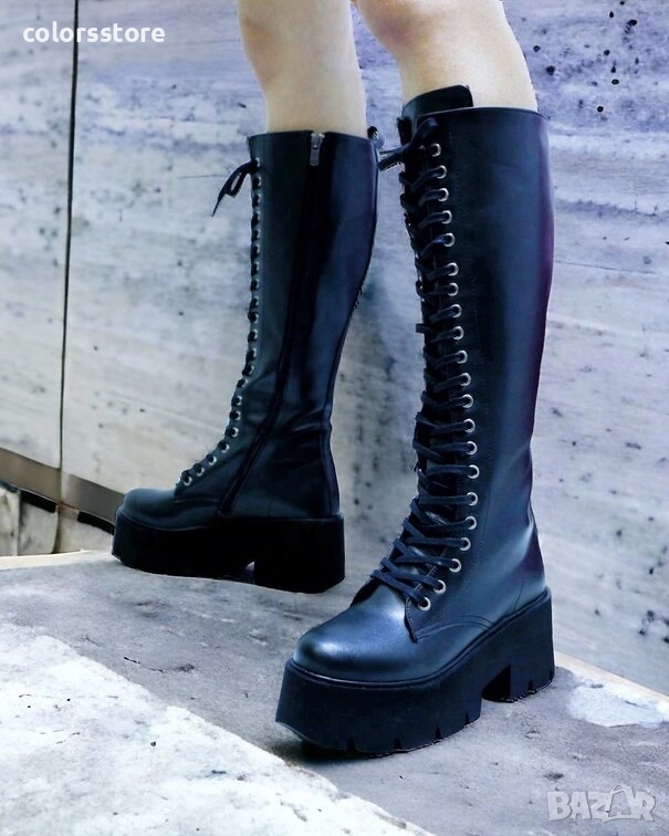 Ботуши на платформа - черна кожа - VR30 , снимка 1 - Дамски ботуши - 34494756 1/1