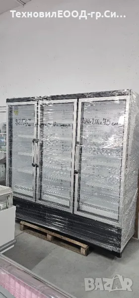 Продавам Нова Крайстенна хладилна витрина с размери 200х200х75см. Работен диапазон от-2 до +8 градуса. Саморазмразяваща се. Но Фрост система. 3 отварящи се врати. Вграден компресор. Фреон R290.Компресор Embraco.