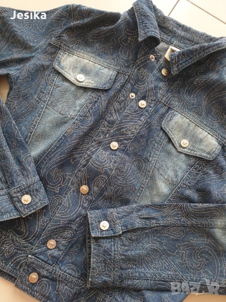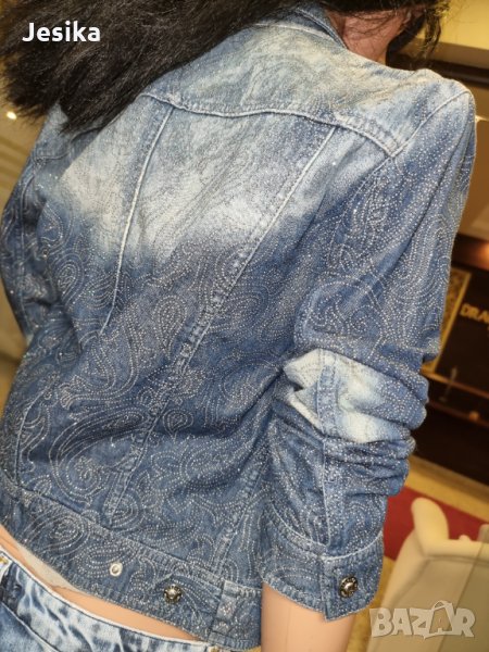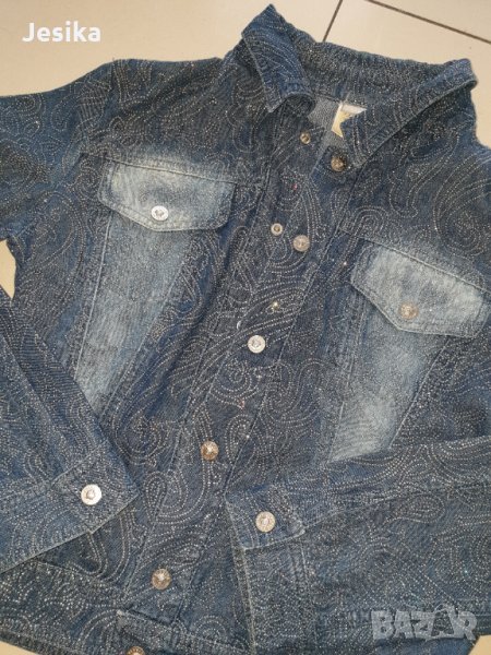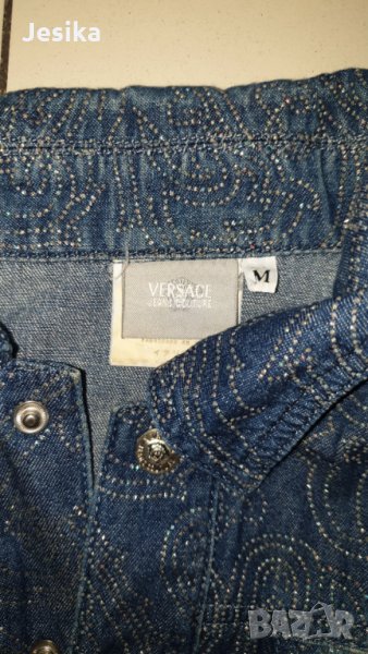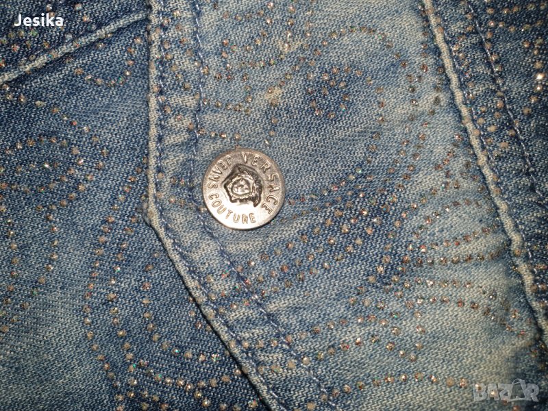 Дънково оригинално яке Versace със сребърни орнаменти. Носено два пъти
