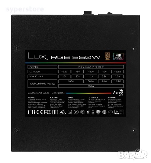Захранване за настолен компютър AeroCool Lux RGB 550W ATX