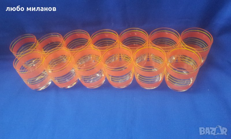 Ретро ракиени чашки, оранжав и жълт мат кантове 13 бр → Обява 34501012