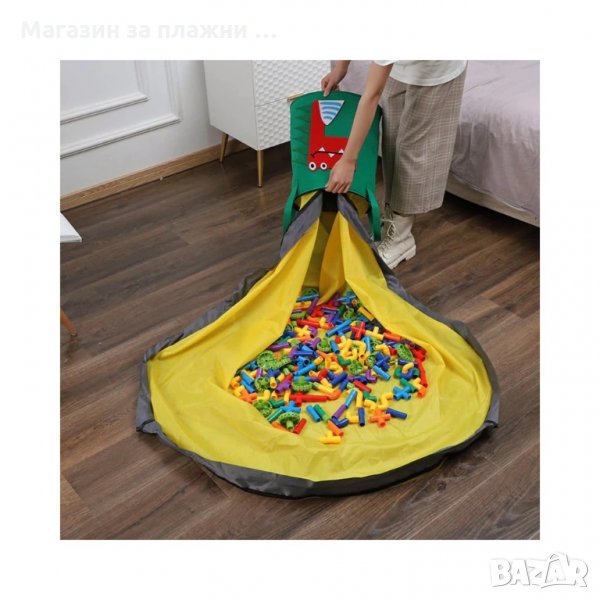 Удобен и практичен кош за съхранение на играчки с подвижна постелка за игра