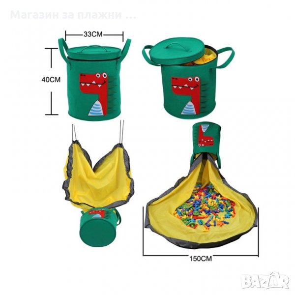 Представяме Ви Кошница за играчки, със сгъваема постелка за игра, която ще прибере бързо всички грачки, и по- големи, и по- малки. Този здрав кош за съхранение се предлага взелен цвят с красива щампа с Крокодил.