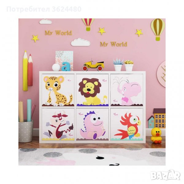 Със забавна фигурки апликации, кутията се побира в повечето рафтове и е чудесна за подарък, както и за съхранение на играчки, книги, дрехи, игри, консумативи и други.