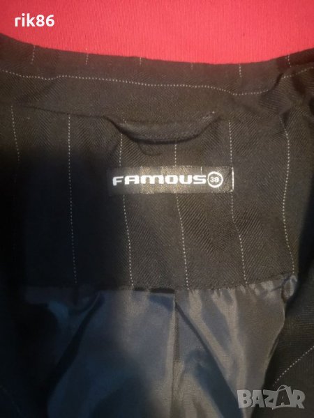 Продавам два броя дамски сака в перфектно състояние. Размер М.Сакото от първите три снимки е на марката FAMOUS. По етикет 38.Измерилабсъм го допънително:Дължина ръкав от рамото 58см., ширина под мишници 44см.,дължина 53см.И двата модела са къси и се закопчава с по едно копче от пред.