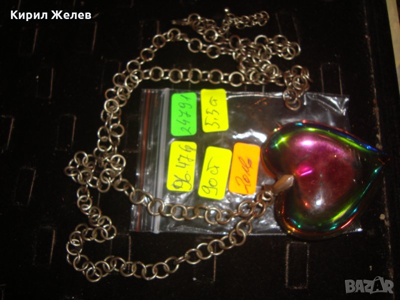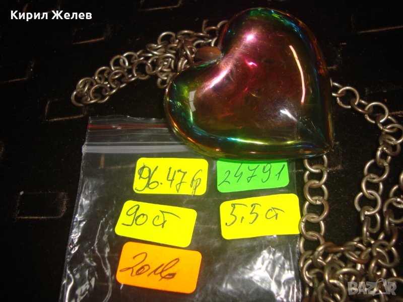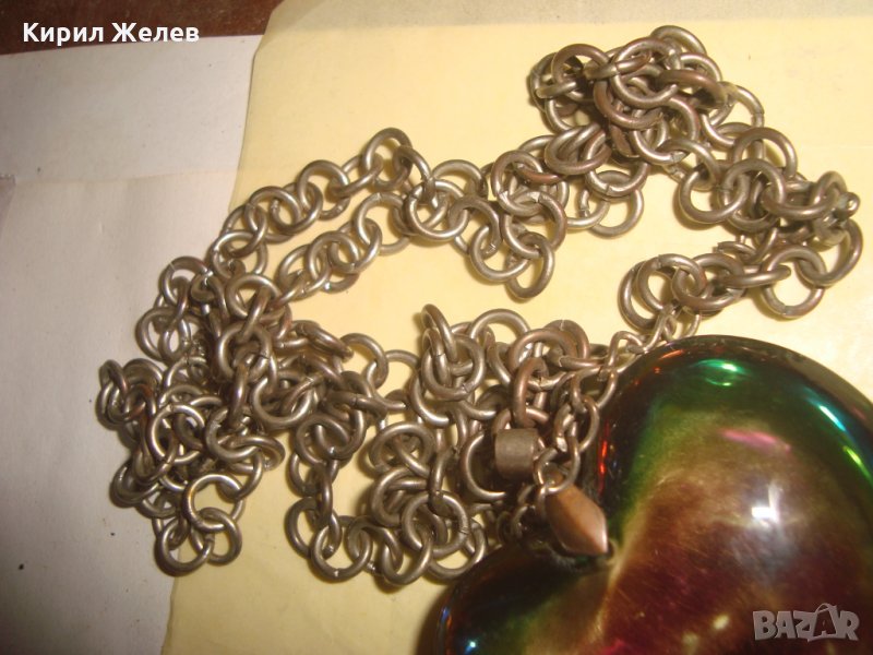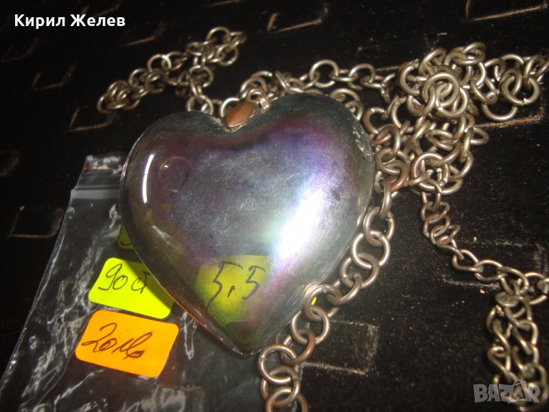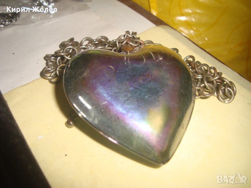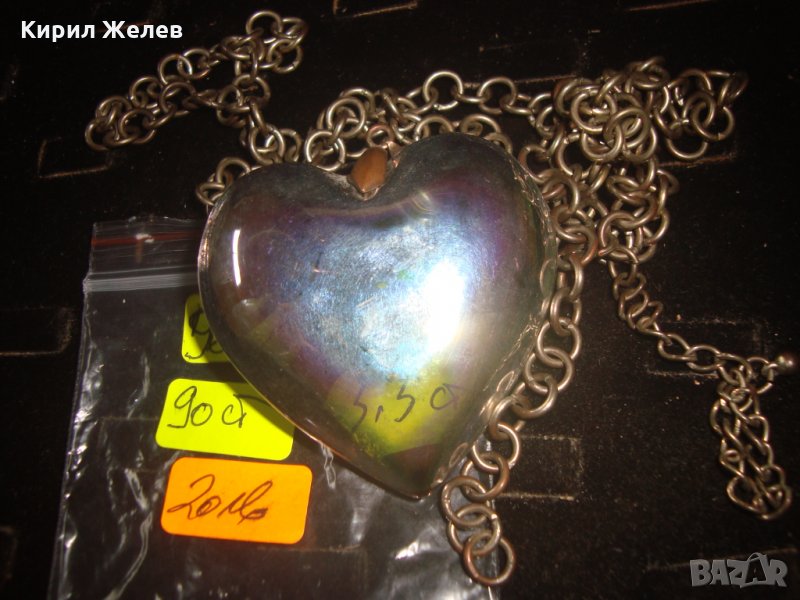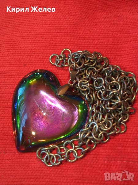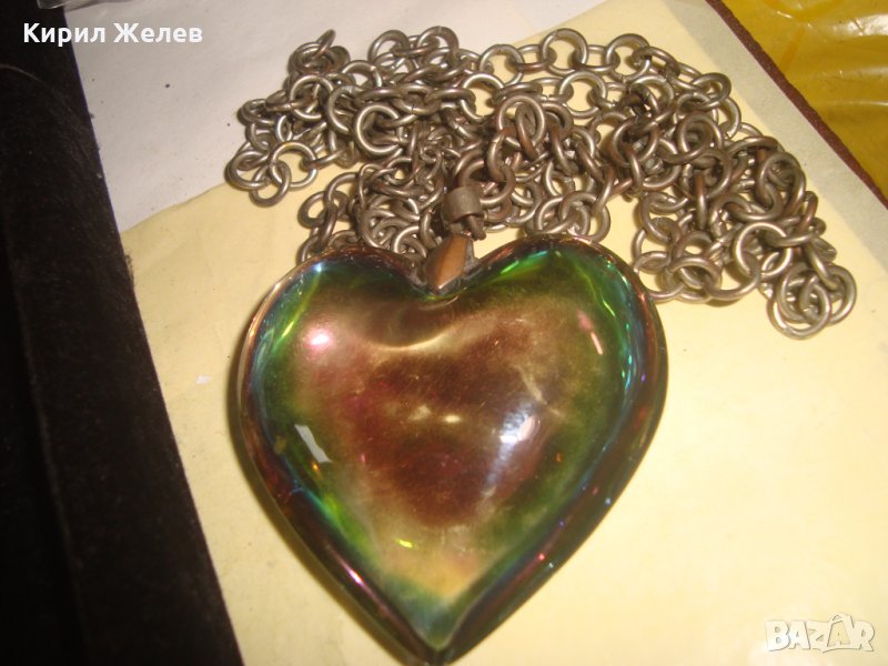 СТАР СЪРЦЕВИДЕН ВИНТИДЖ МЕДАЛЬОН КОЛИЕ ЦВЕТЕН КРИСТАЛ БРОНЗ ВЕРИЖКА МНОГО КРАСИВО КОЛИЕ 24791