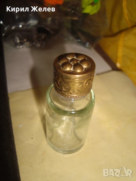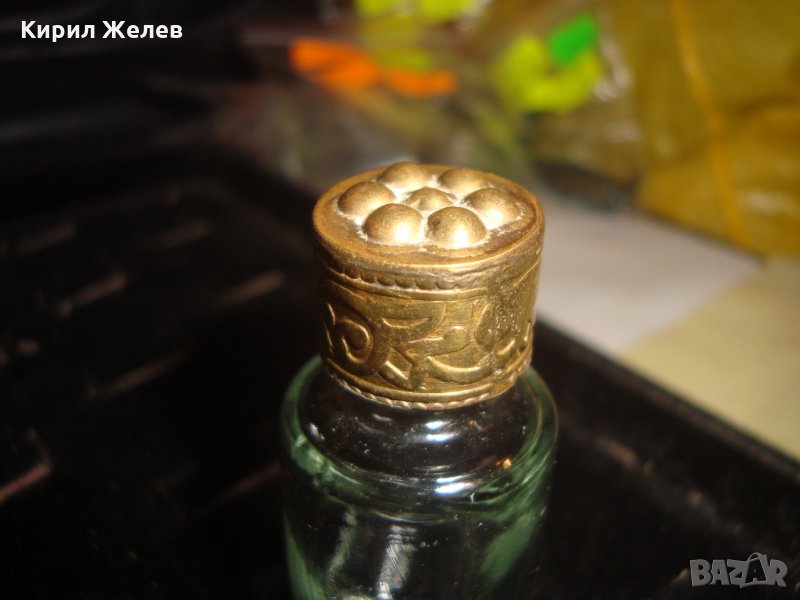 МУСКАЛ СТАРО ШИШЕНЦЕ за РОЗОВА ВОДА БРОНЗОВО ОРНАМЕНТИРАНО КАПАЧЕ АРТ НУВО СТИЛ РЯДКО 24780