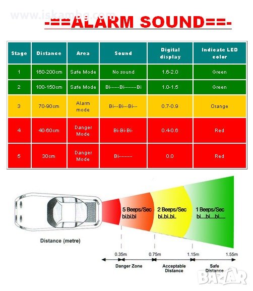 Безжичен парктроник с 4 сензора, звуков и светлинен сигнал.