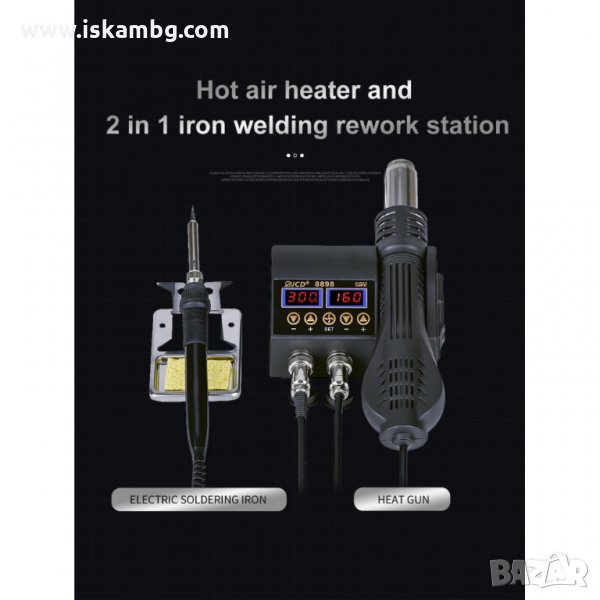 Станцията може да се използва за запоявяне и разпояване, има дръжка с горещ въздух, стандартен бързо загряващ поялник. Чрез PID микропроцесор, информацията за температурите на пистолета и поялника върху дисплеите е бърза и достоверна, със бърза скорост на опресняване.