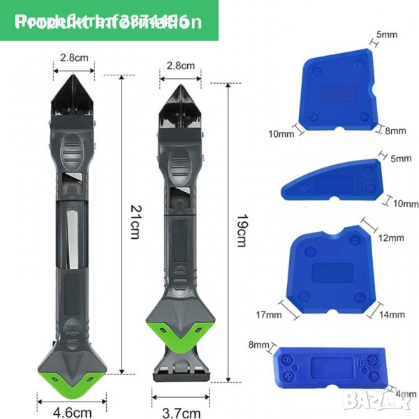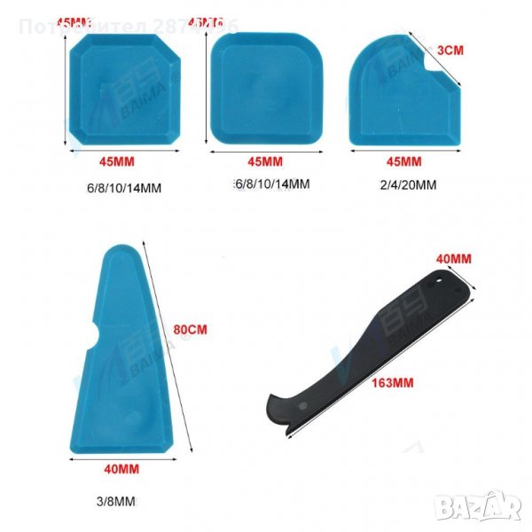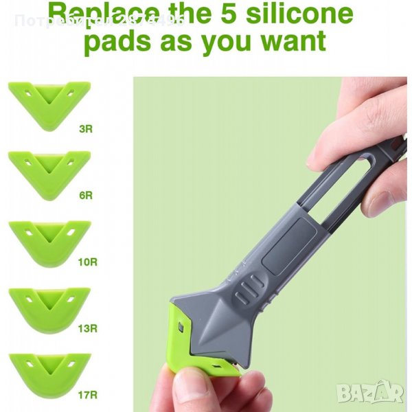 Предлагаме ви комплект за премахване и нанасяне на силиконови фуги от 6 и 12 части.
