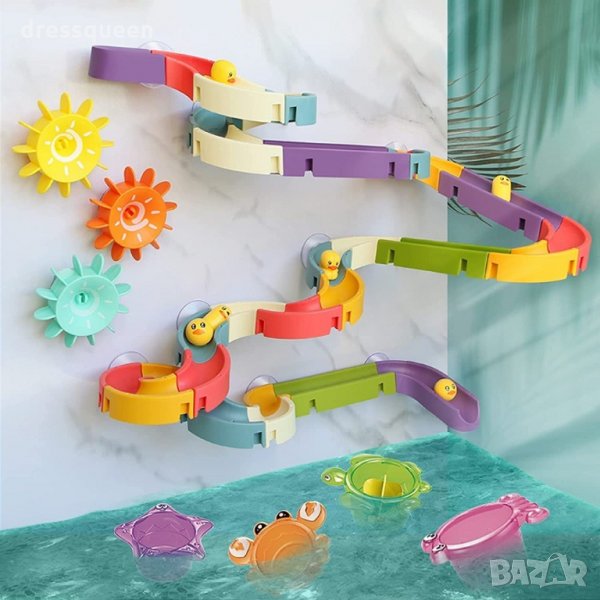 Забавното водно съоръжение е предназначено за игри в банята и ваната, докато малчуганите се къпят. Цветната водна пързалка се захваща с гумени вендузи към стената. Играта може да бъде сглобявана всеки път по различен начин, в зависимост от въображението на децата.