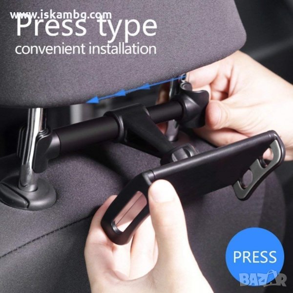 Ако на децата им е скучно по време на пътуване с автомобила или просто се возите на задната седалка и имате нужда разнообразие през дългия път, за да мине той неусетно – тази стойка за телефон и таблет е точно за вас! Тя е предназначена специално за задната част на седалката на колата и позволява на децата или на другите пътници, които се возят отзад да гледат филми, клипове или да слушат музика, без да се налага да използват ръцете си.