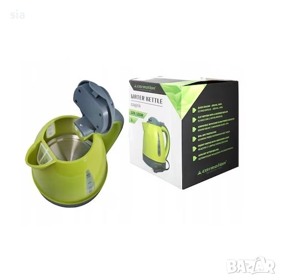 Електрическа кана, чайник за автомобил, 1л., 12V, 150W, зелен