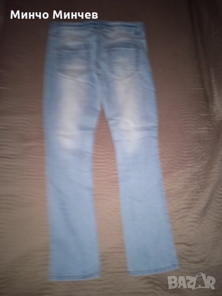Дънките са здрави без скъсано или протрито имат ластик на талията за да се свиват и отпускат, точните размерите са на снимките.