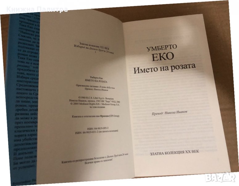 Името на розата -Умберто Еко → Обява 34513976