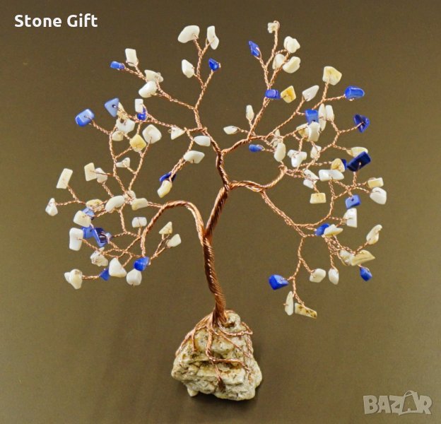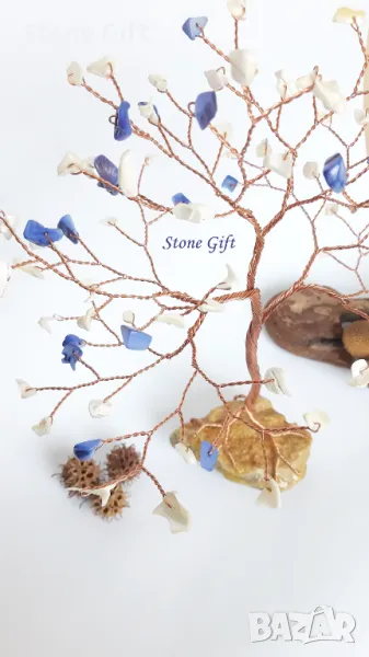 За това дръвче съм използвала Камъни Седеф, медна тел, естествен гипс и морски камъни за основа. Дръвчето е високо 25 см., 20 см. широко и 16 см. дълбоко.