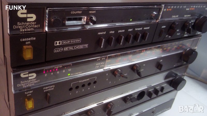 Системата се състои от: предусилвател,стъпало,тунер и дек,които се свързват помежду си без никакви кабели.