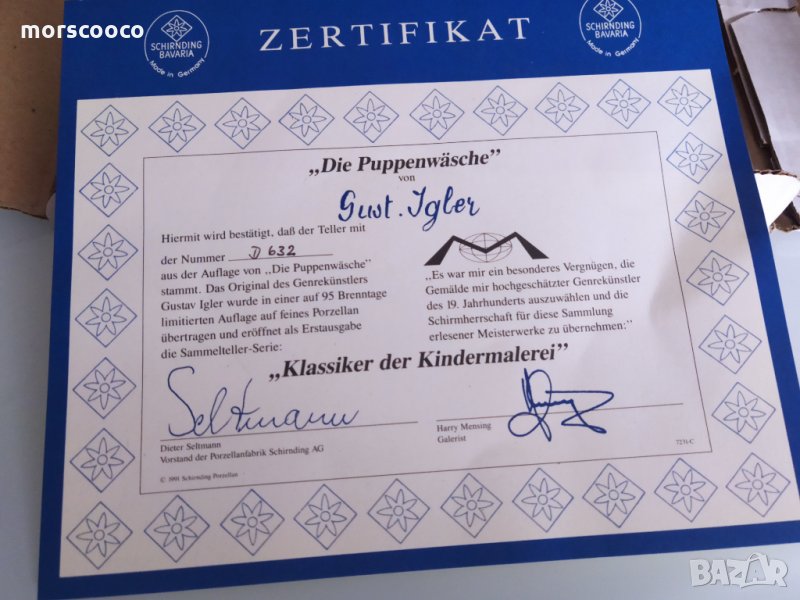 Баварски порцелан рисувана чиния, сертификат → Обява 34521775