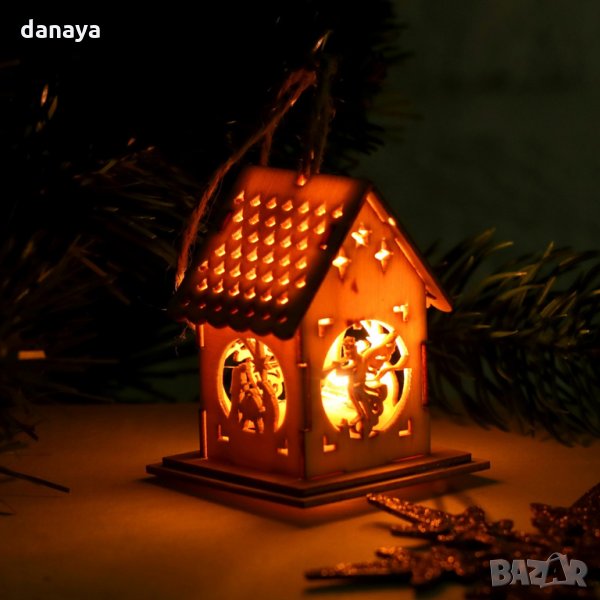 Мини къщичка, изработена от дърво, която свети и създава уют и много коледно настроение. Изобразява ангел и сцена от Божието рождество, заедно с Витлеемската звезда. Къщичката е малка и лека, с вградена връвка за закачане на коледната елха или на друг предмет. Красива декорация за дома.