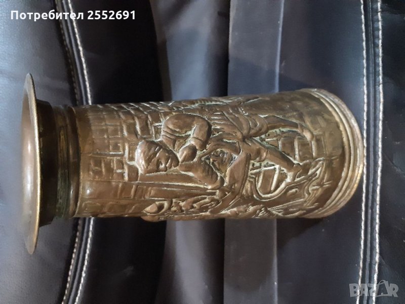 Ръчно изработена метална/месингова /АНГЛИЙСКА фирмена ваза. Наличие на фирмен надпис "ЕLPEC" Височина-16см.