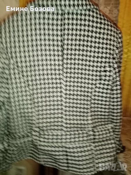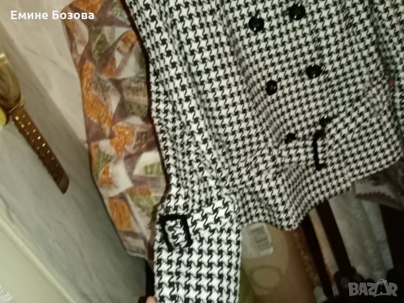 1.Черно бяло късо сако/палтенце/ с подплата Z&J р-р L. Закопчаване двуредно с 3 копчета,колан с катарама на ръкавите също коланче с катарама.Цена 29лв