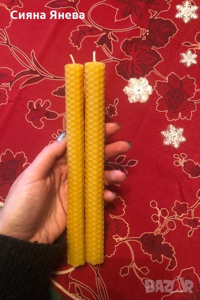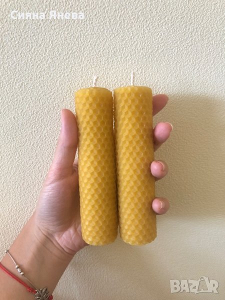 дравейте, представям Ви едно семпло и уютно предложение, направено с много любов. Ръчно направени восъчни свещи, от пчелни восъчни листи. Фитилът е 100 процента памук. Дори питата е излята и направена ръчно от мен, а восъкът е от баща ми, който е пчелар. Естествени и красиви. Не димят, нямат лош аромат, а само прекрасна нотка на истински мед и восък. Дейстават за успокоение, пречистване на въздуха, защита, хармония, любов и уют в дома. Едва след поръчка се правят специално за вас. Могат да стоят години като декорация, само трябва да са на непряка слънчева светлина, ако е за по-дълго, защото са от 100% пчелен восък и от силна топлина си променят цвета. 💛Цената на двата стандартни вида е 1.60 евро за брой свещ, а на големите с 3 евро за брой.