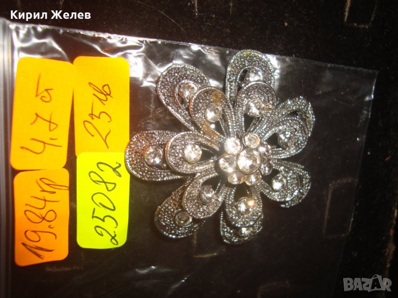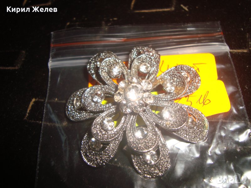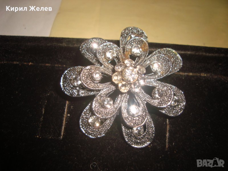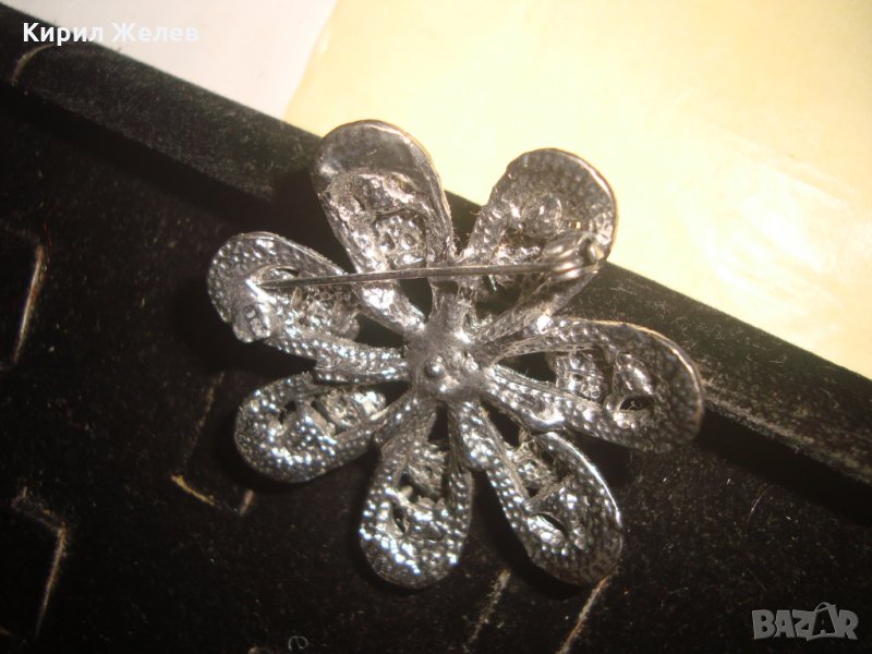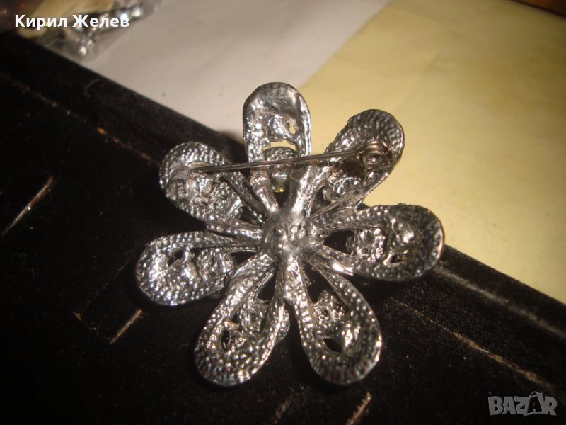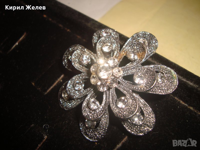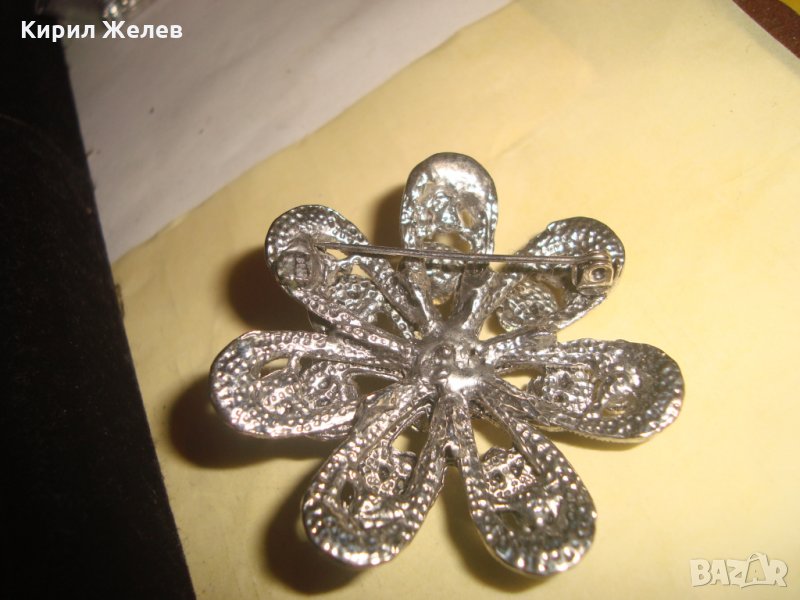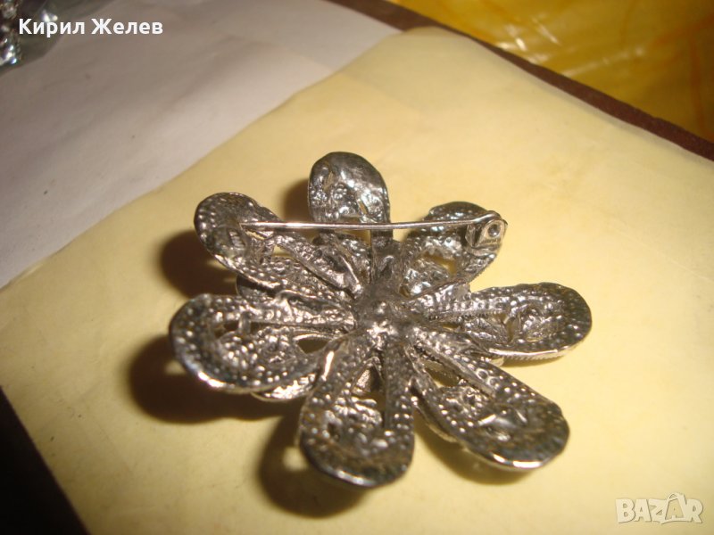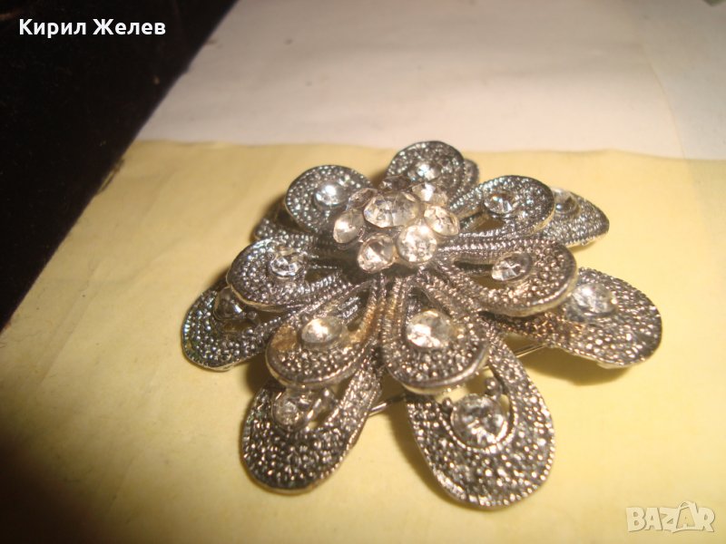СТАРА СРЕБРИСТА СКЪПОЦЕННА ФЛОРАЛНА ВИНТИДЖ БРОШКА с БОХЕМСКИ ФАСЕТ КРИСТАЛИ 25082