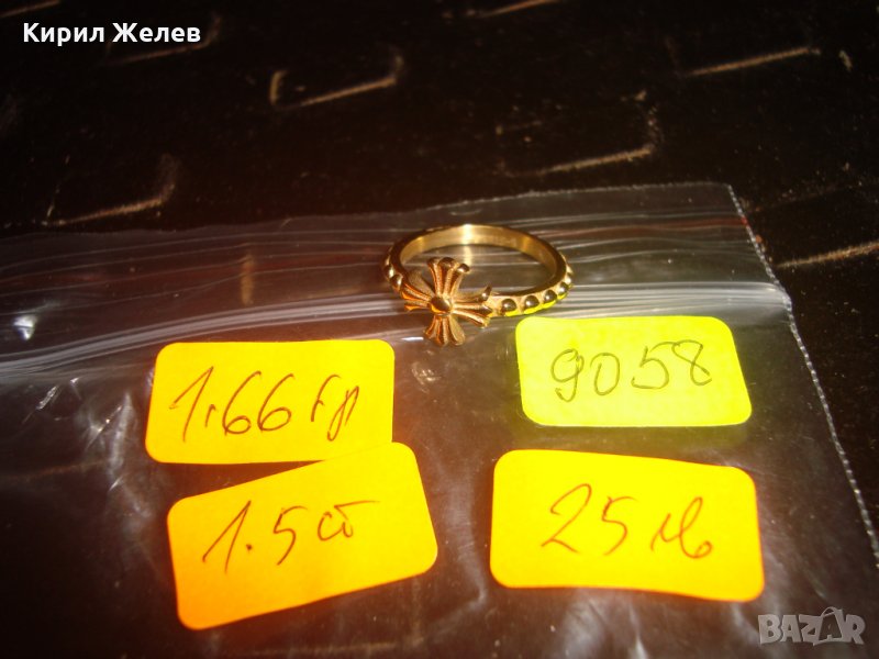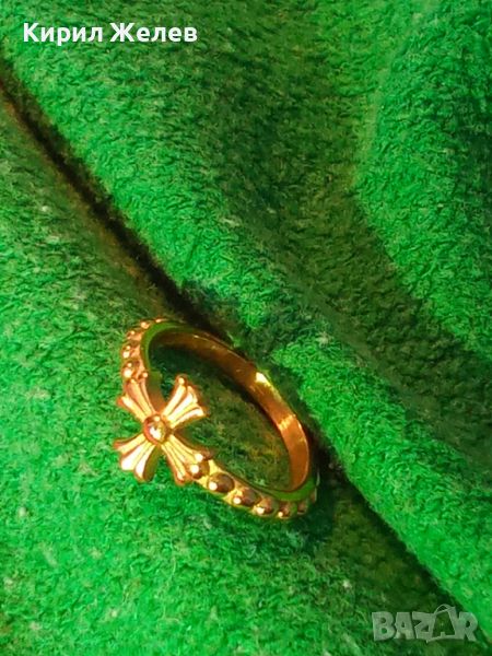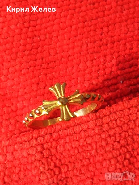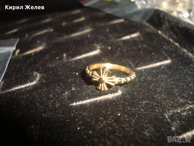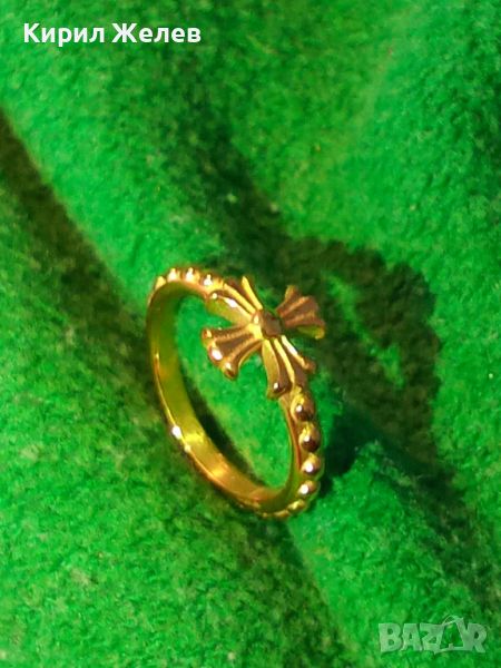 КРЪСТООБРАЗЕН СТОМАНЕН НЕРЪЖДАЕМ ПОЗЛАТЕН АРТ МОДЕН ПРЪСТЕН 9058