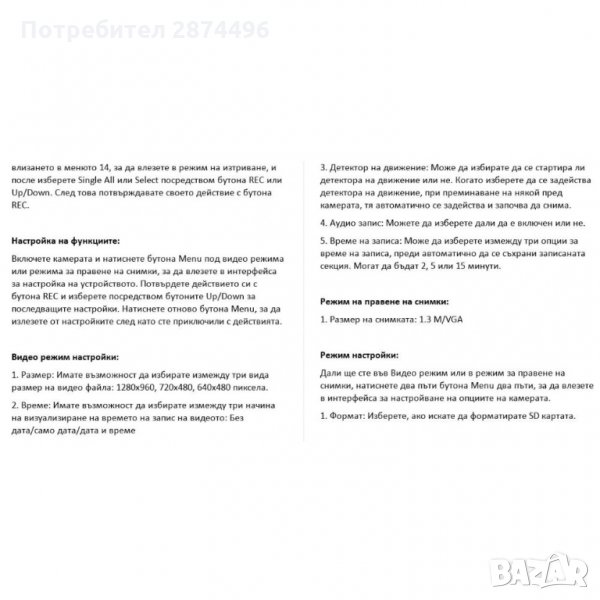 Резолюция при запис: 1280 * 720/848 * 480/640 * 480 пиксела (кадъра в секунда 10/20/30 кадъра в секунда, за да бъде избран)