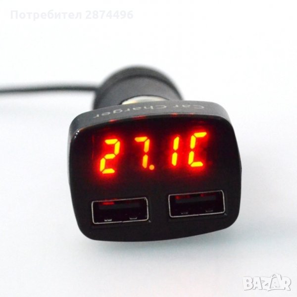 Зарядно USB устройство с 5 VDC изход, волтметър и термометър за кола