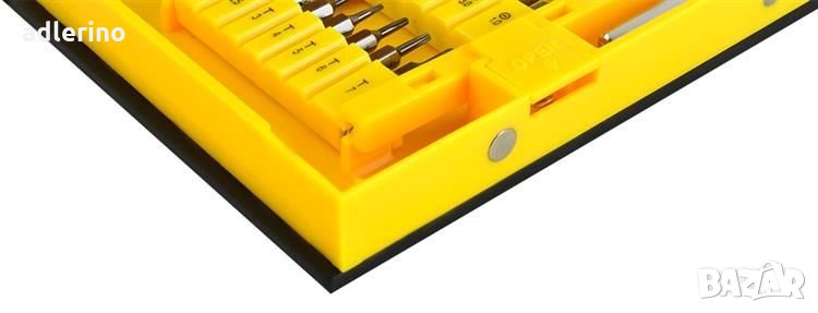 отвертки се състои от 38 елемента в магнитно затворен калъф. Всеки